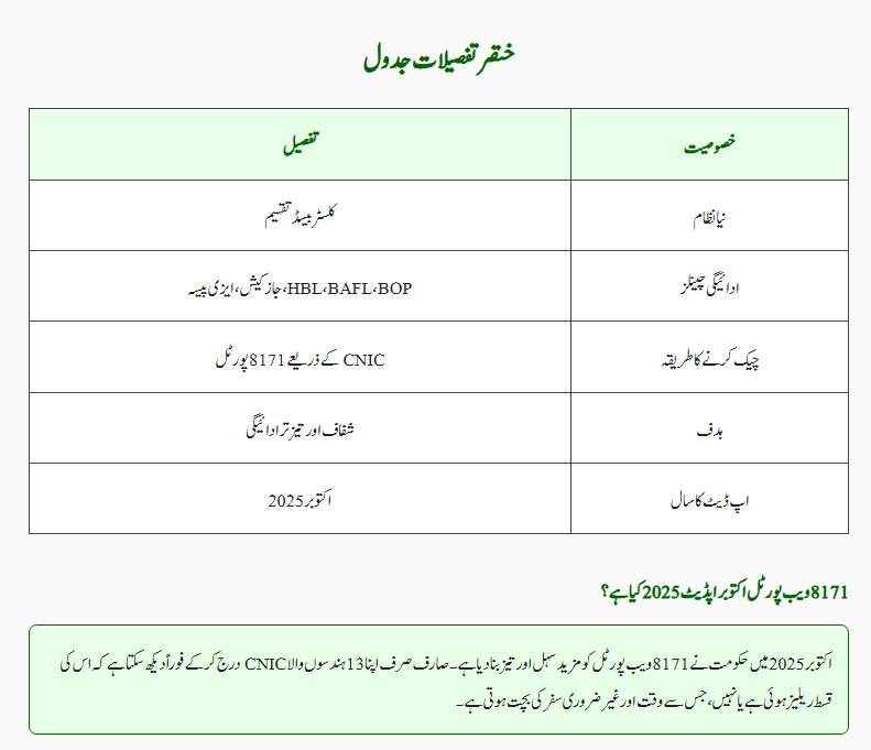 In October 2025, the government introduced a major update to the 8171 Web Portal. With this update, beneficiaries no longer need to stand in long queues or visit banks again and again just to confirm their payment status. Now, you can check your eligibility and payment information at home simply by entering your CNIC number online.