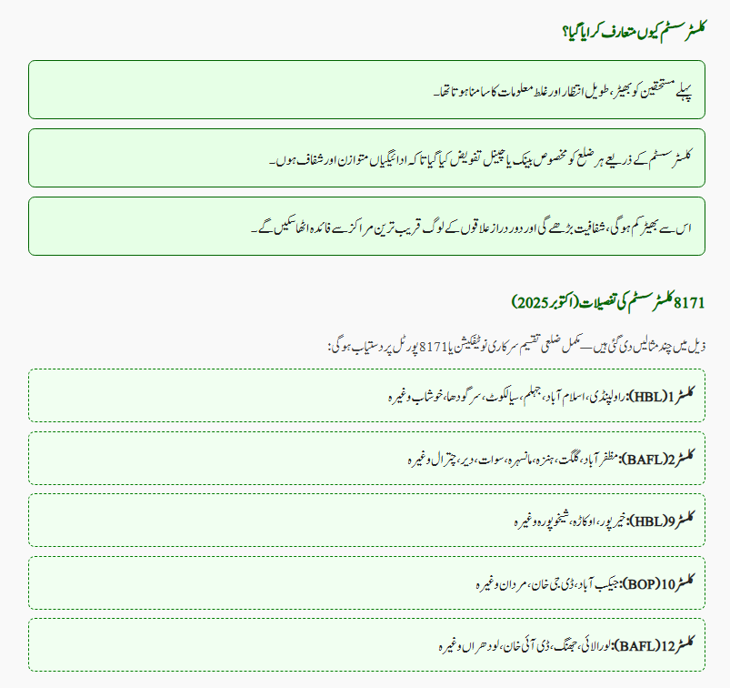 The 8171 Web Portal October Update 2025 has made the BISP system more transparent, reliable, and accessible for families across Pakistan. With the new cluster system, people now know exactly where to collect their payments, and with the online portal, checking eligibility has never been easier.