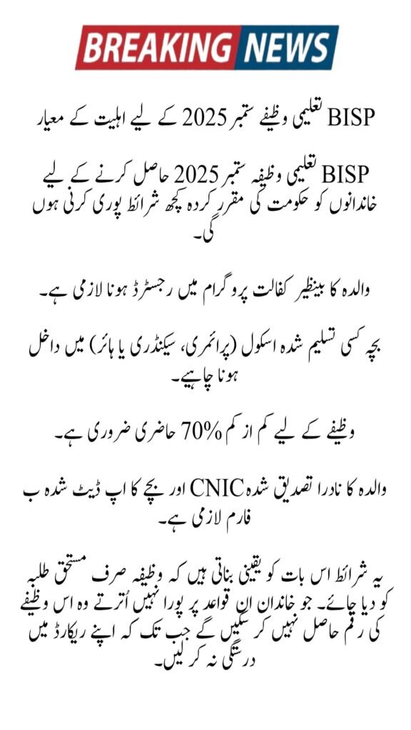 To receive BISP Taleemi Wazaif 2025, families must follow specific rules set by the government.