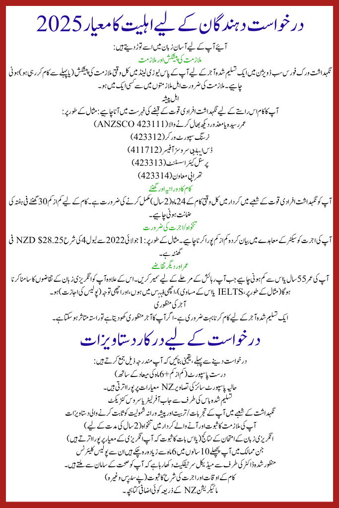 The Care Workforce Work to Residence Visa is a honest and valuable occasion for care specialists in Pakistan who want to migrate to New Zealand, work in high-demand roles (aged care, disability support, personal care) and ultimately settle. If you secure a full-time job offer from an accredited employer, ensure you encounter work/ wage/ boss/ hours requirements, gather all your documents, fulfil 24 months of full-time work, and formerly lodge your residence application—you could achieve permanent house in New Zealand. This article has given you all the ladders, criteria, documents and tips.