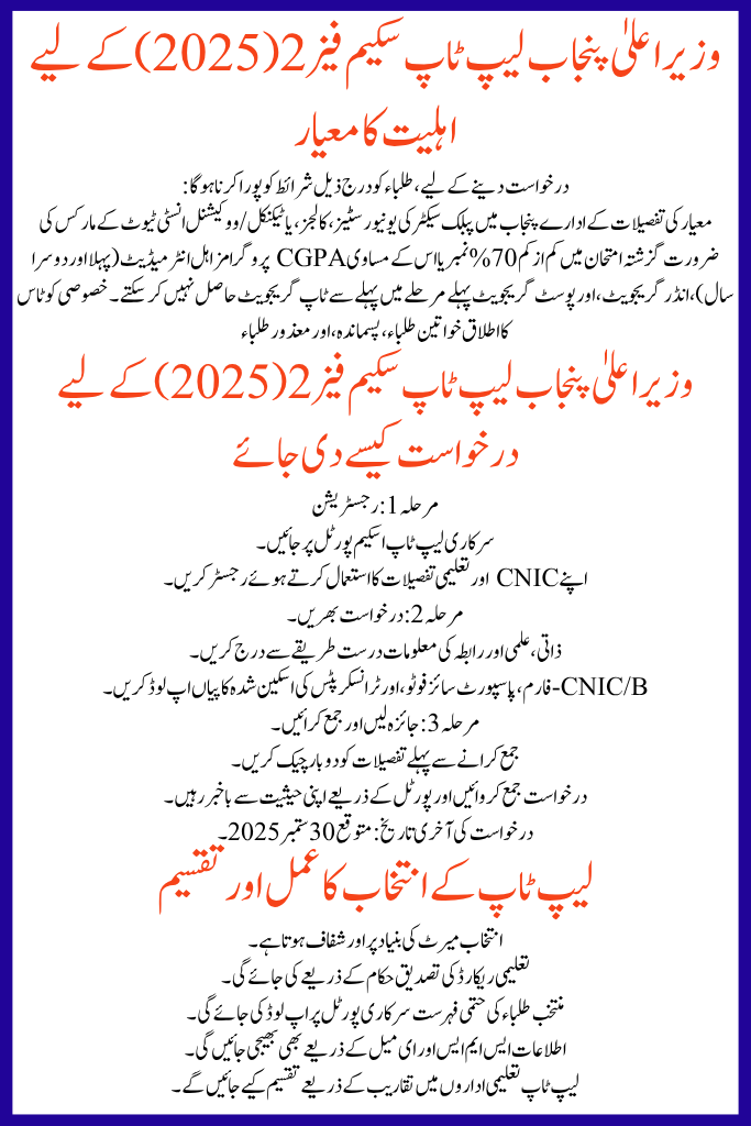 | Program Name | CM Punjab Laptop Scheme Phase 2 – 2025 |