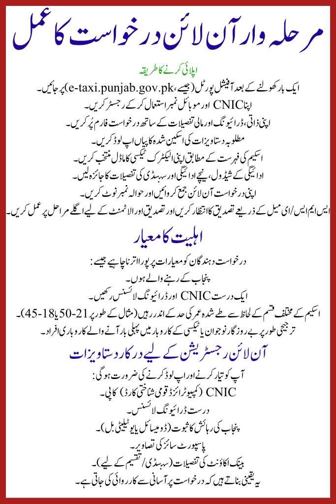 The E‑Taxi Scheme 2025 Repayment Schedule has arose as a major inventiveness by the Administration of Punjab, providing unemployed youth in Punjab a honest chance to become entrepreneurs with an electric taxi commercial and zero-interest backing. Through this arrangement you can put on online, benefit from a funding and drive your personal electric taxi under a wieldy payment plan.