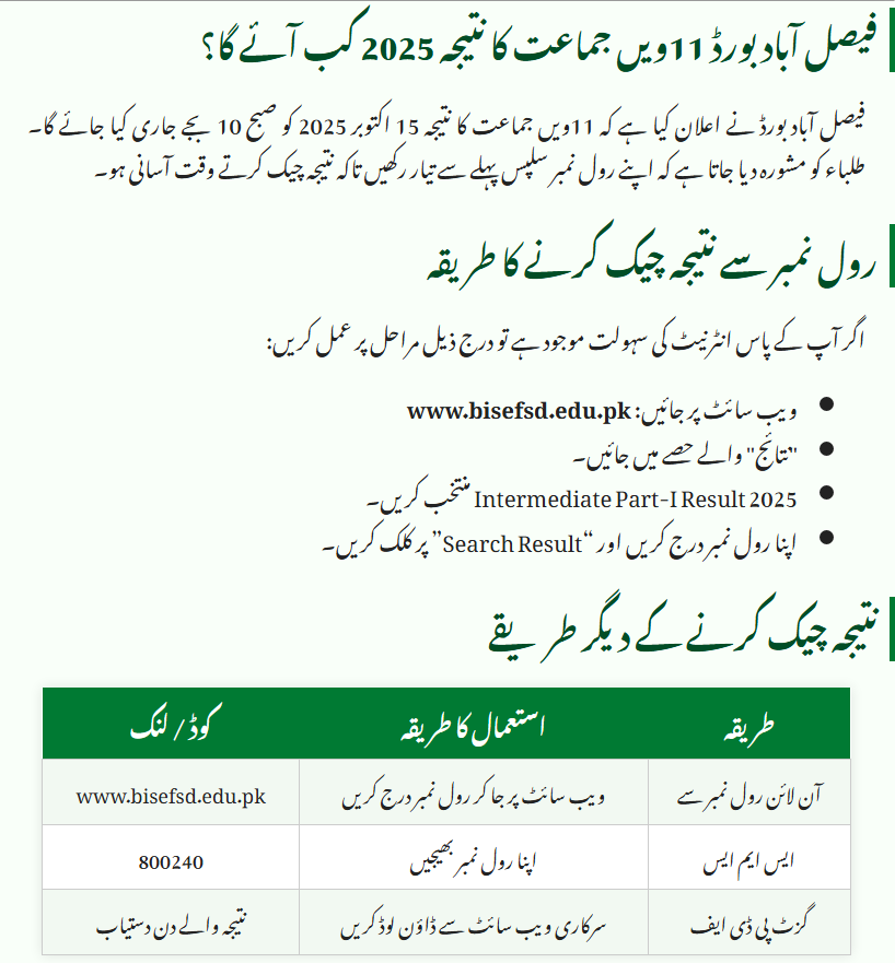 Q1: When will Faisalabad Board 11th Class Result 2025 be announced?