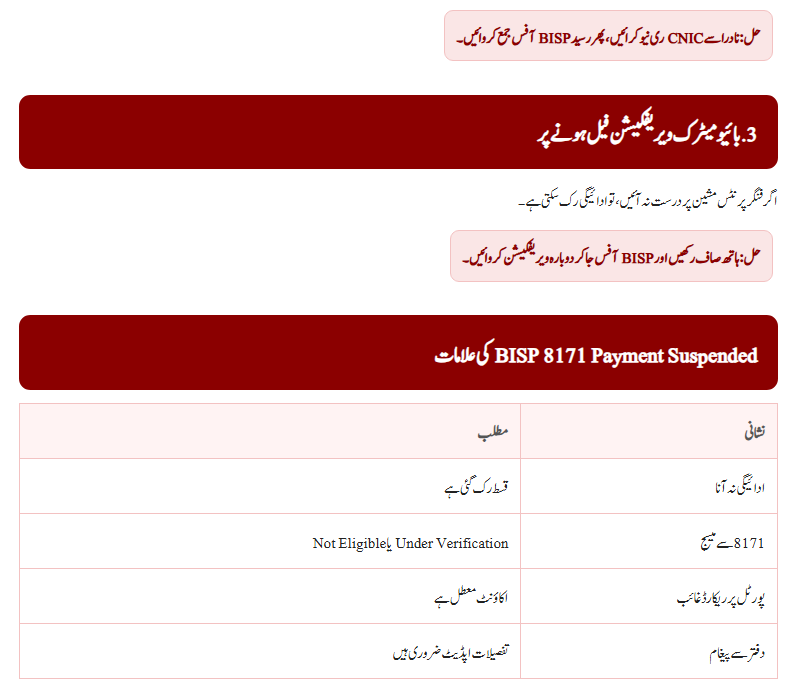 3. Biometric Verification Failure and BISP 8171 Payment Suspension