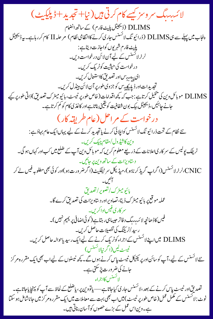 Punjab already has a DLIMS (Driving License Issuance Management System) Phase II in operation. This digital platform allows citizens to: