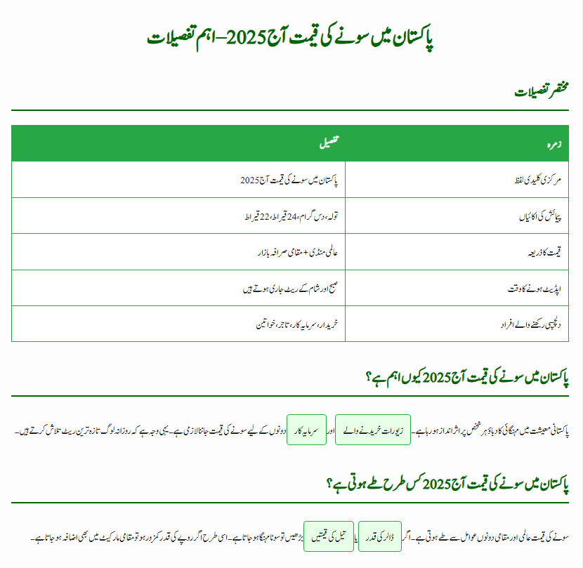 | Focus Keyword | Gold Rate in Pakistan 2025 |