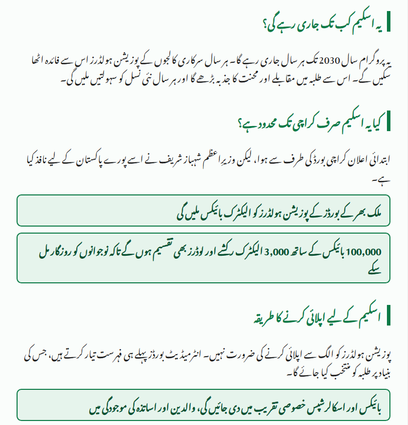 Although the first announcement came from the Chairman of Karachi Intermediate Board, Prime Minister Shehbaz Sharif has extended the program to the entire country. Position holders from all education boards of Pakistan will be eligible for these electric bikes. Alongside 100,000 bikes, 3,000 electric rickshaws and loaders will also be distributed. The rickshaws and loaders are aimed at unemployed individuals to help them earn a livelihood and support their families. This way, the scheme promotes both education and employment opportunities.