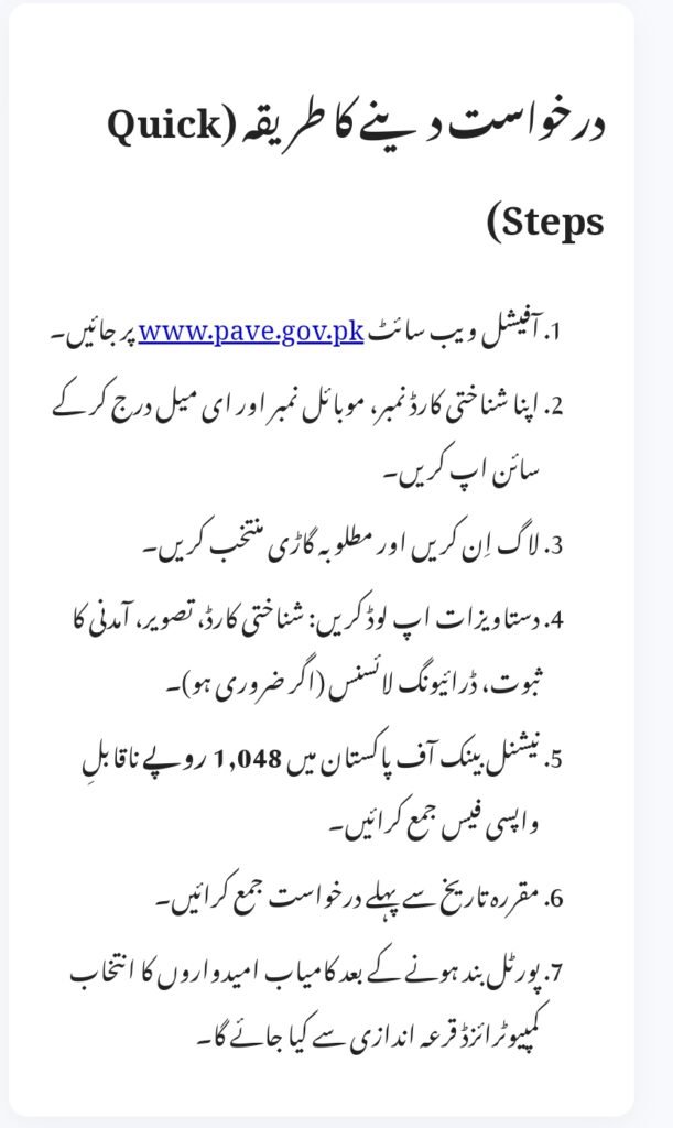 The official last date to apply for the PAVE Scheme is 30 September 2025. All applications must be submitted before this date to be considered for the first phase of vehicle distribution in 2025–26. After the deadline, the portal will close, and late applications will not be accepted. Applicants are advised to complete their registration early to avoid last-minute issues such as server delays or incomplete submissions. This deadline applies to motorcycles, rickshaws, and three-wheelers.