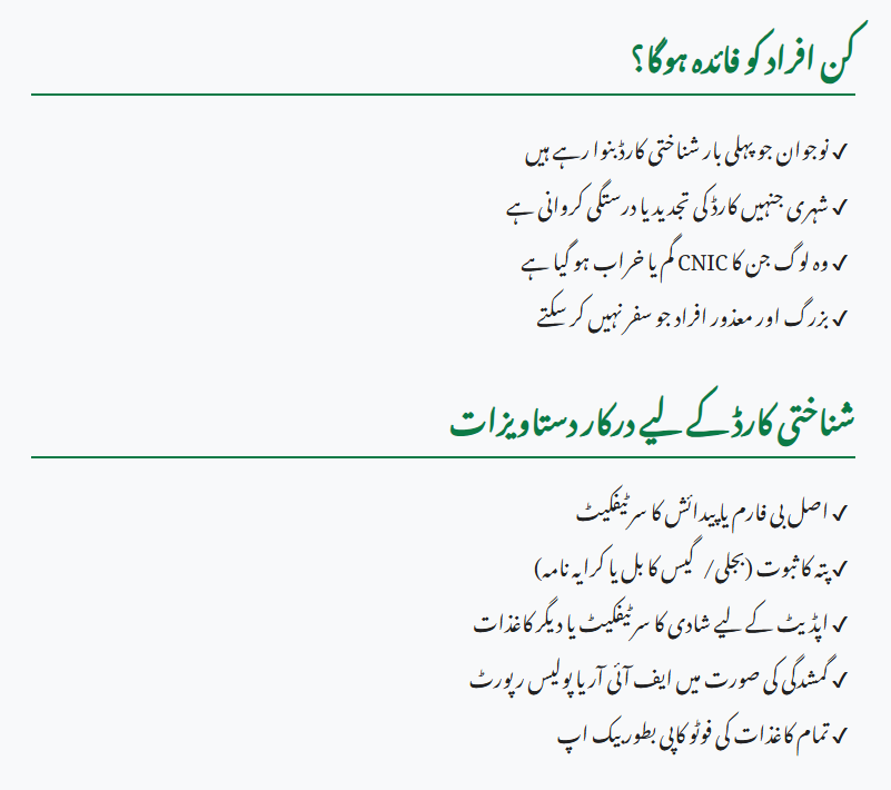 • Those who lost or damaged their CNIC and need a duplicate.