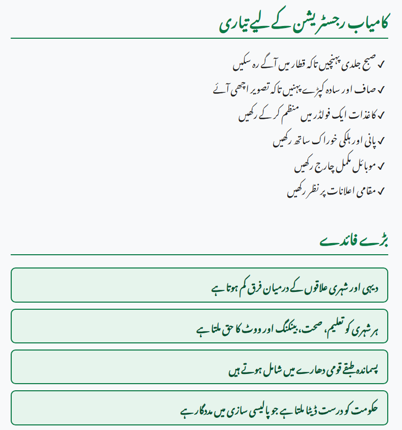 • Stay updated through local announcements or the NADRA helpline.
