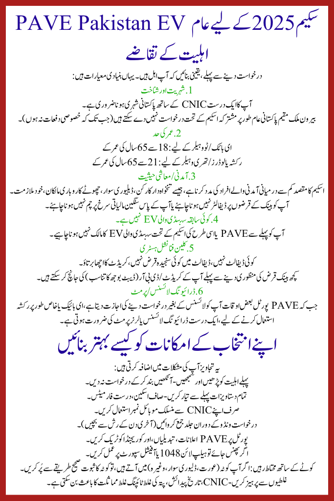 General Eligibility Requirements for PAVE Pakistan EV Scheme 2025