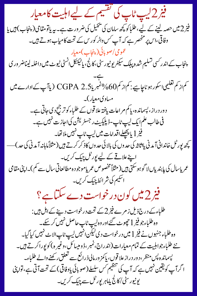 | Phase 2 | Missed in Phase 1 + new eligible applicants | 70,000+ (or more in Punjab) | Merit-based lists via institutions |