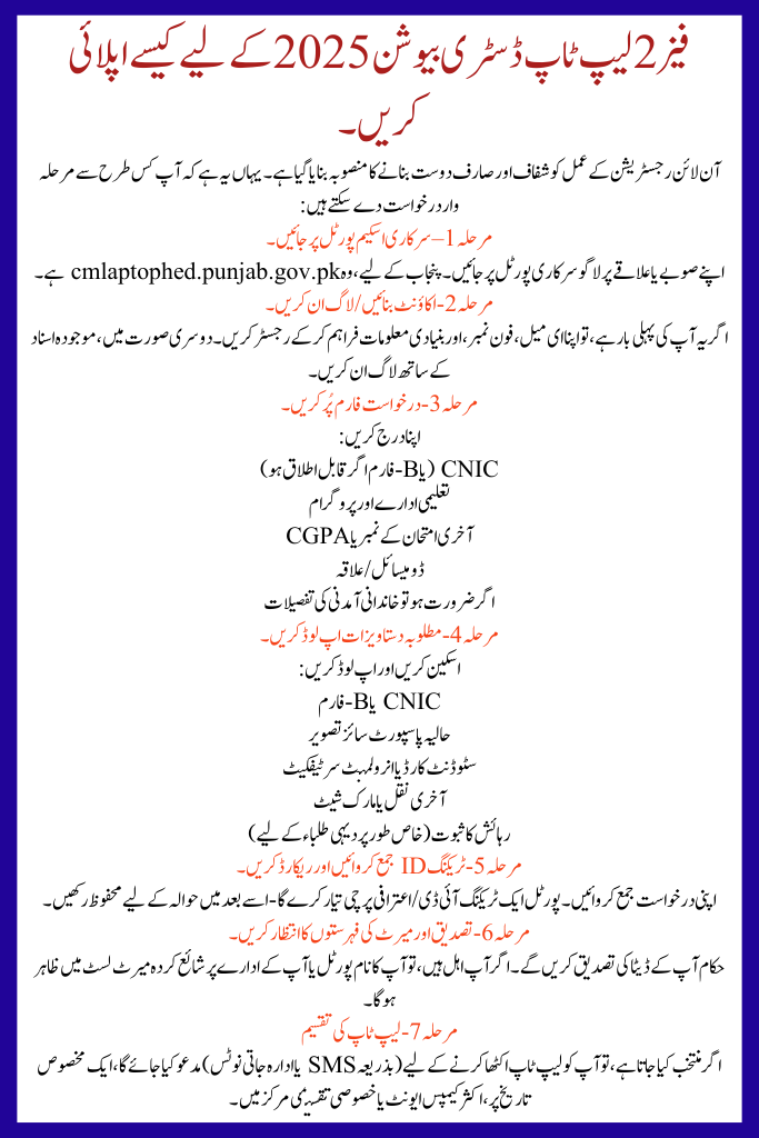 The government of Punjab (and other provinces) has formally publicized Phase 2 of the Laptop Distribution 2025 for students who could not benefit in Phase 1. This scheme aims to support deserving students by if them laptops — a chance many missed earlier. In this object, we cover everything: what it is, aptness, by what way to apply, delivery, benefits, FAQs, then tips.