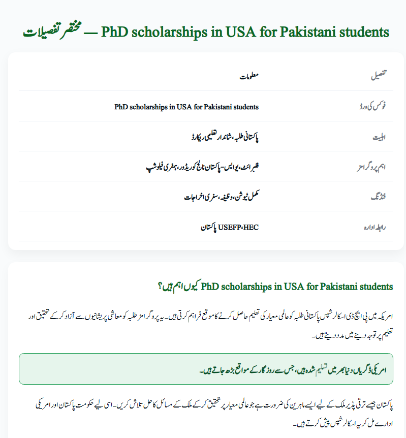 | Focus Keyword | PhD scholarships in USA for Pakistani students |