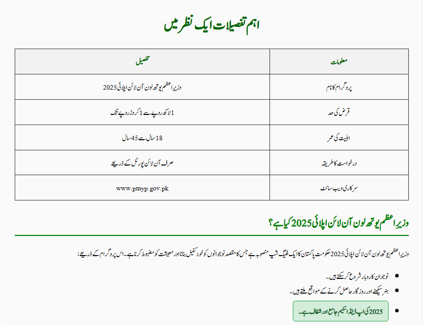 | Program Name | Prime Minister Youth Loan Online Apply 2025 |