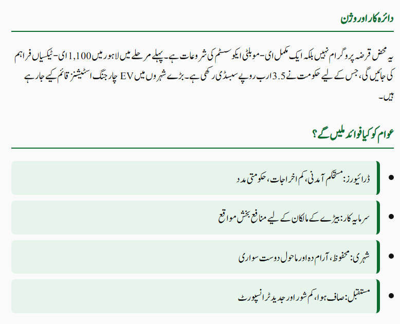 This is more than just a loan program—it’s the start of a complete e-mobility ecosystem. In the first phase, 1,100 electric taxis will be launched in Lahore with a subsidy of 3.5 billion PKR from the Punjab government. EV charging stations are being built in major cities to support drivers. In the future, the scheme will expand to other cities across Punjab. The main goal is to provide modern, eco-friendly, and affordable transport to the public.