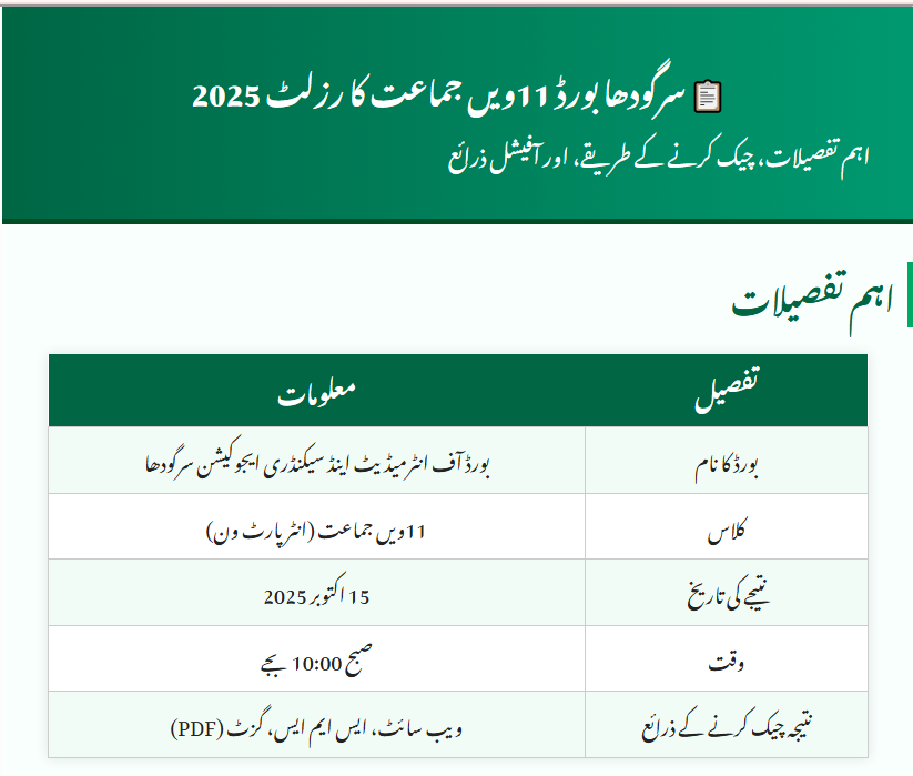 For students of Sargodha, Khushab, Mianwali, and Bhakkar, the Sargodha Board 11th Class Result 2025 is one of the most awaited academic moments of the year.
