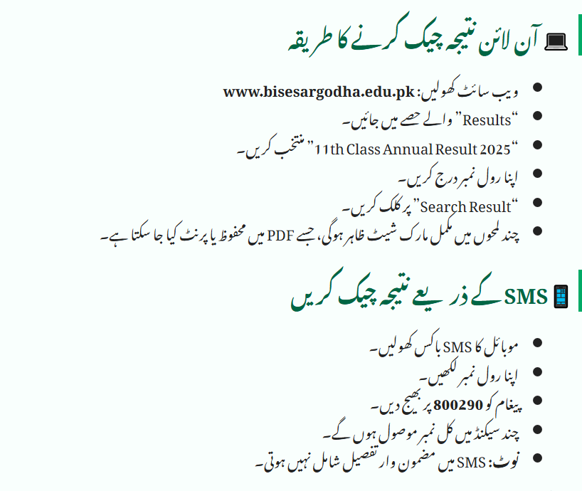📱 How to Check Sargodha Board 11th Class Result 2025 by SMS?
