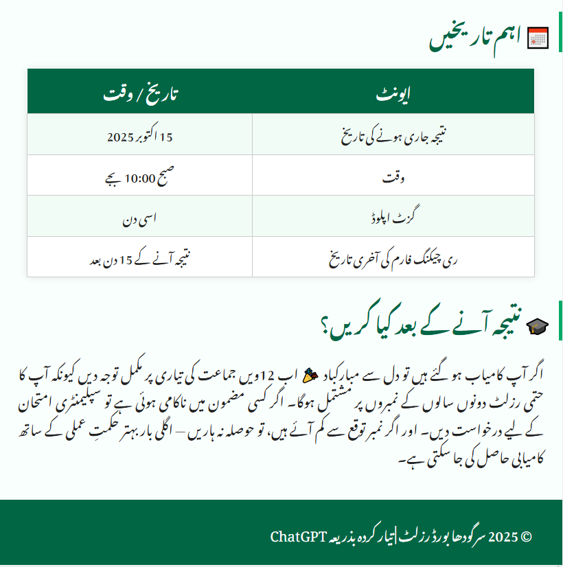 📅 Important Dates – Sargodha Board 1st Year Result 2025