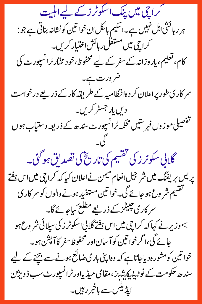 Women in Karachi face unique transportation challenges. The Sindh Announces Pink Scooters Distribution Datedirectly addresses them.