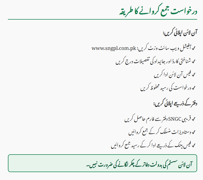 | Required Documents | CNIC and property ownership papers |