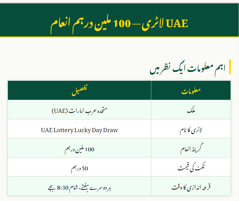 | Lottery Name | UAE Lottery Lucky Day Draw |
